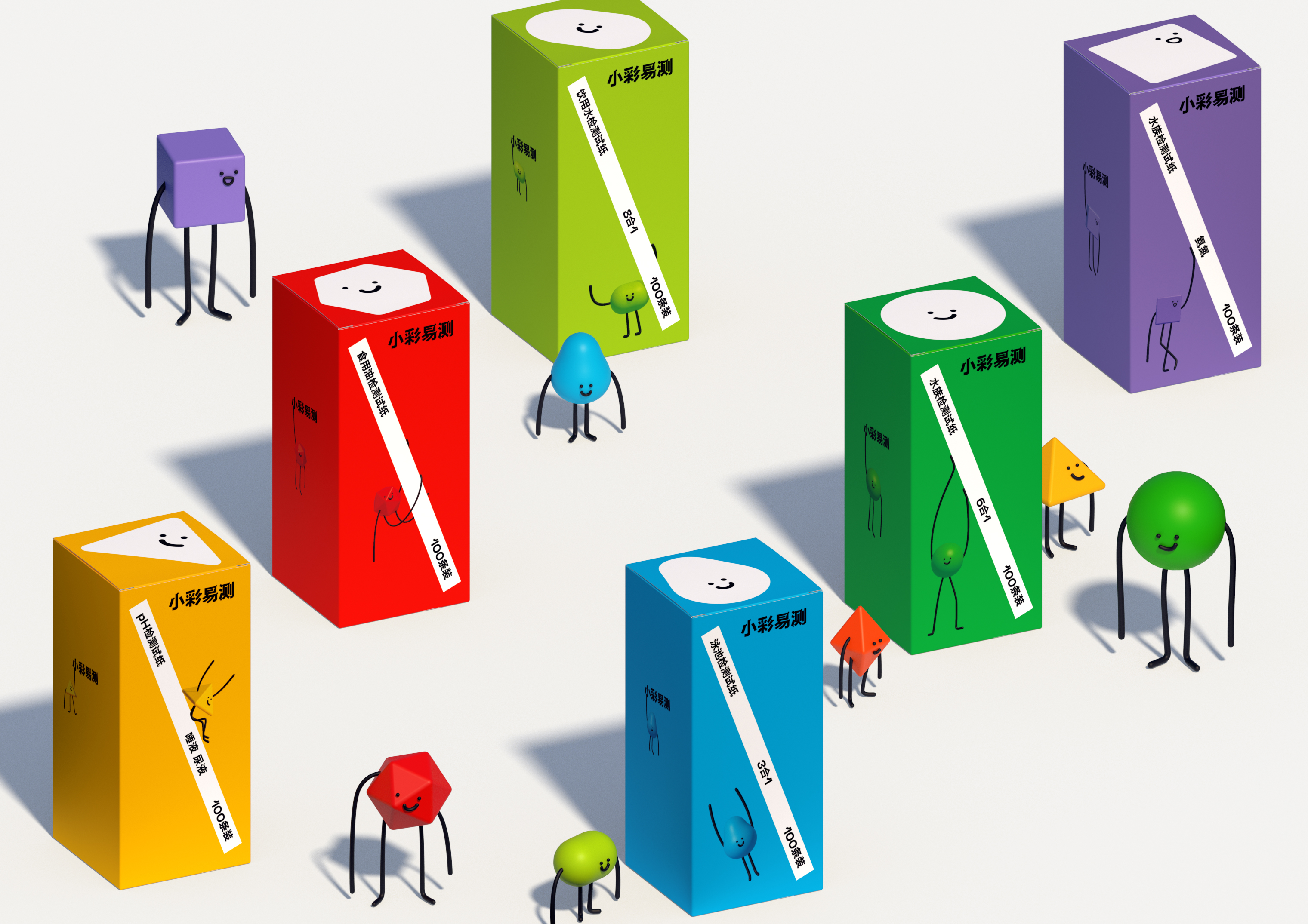 EasyTest is a Test Strip Brand, based in Changchun, China. We have been entrusted to design a brand identity and packages of its products, which is full of juice and fit online market. We developed a concept named “cheerful molecule” as a respond, and brand typeface, shape, package are all depend on this, also the colorful “molecules” smile on their faces.